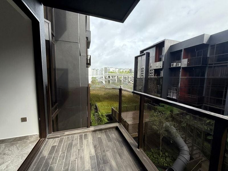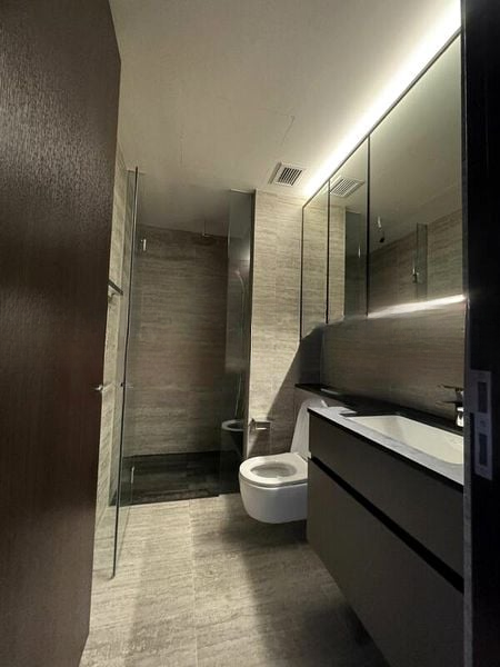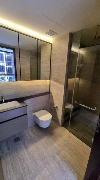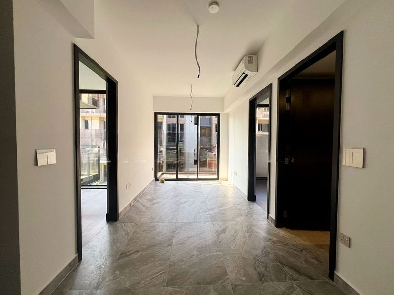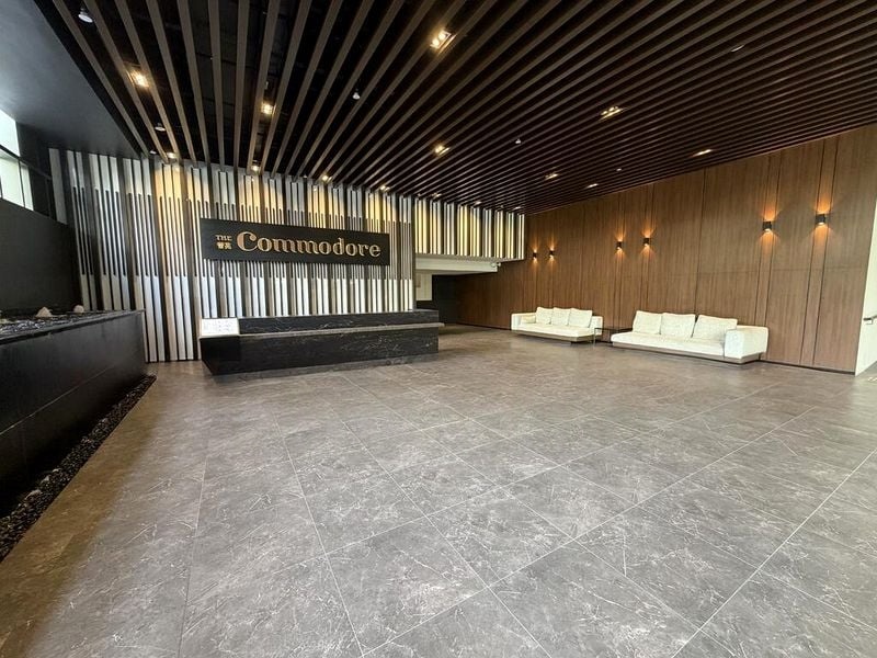 Step into a world of modern elegance with this brand-new 2-bedroom unit at The Commodore. The open-concept living and dining area, adorned with grey marble-look floor tiles, invites abundant natural light through floor-to-ceiling windows, creating a warm and welcoming ambiance. Enjoy serene views of greenery and neighboring residential buildings from your private balcony, perfect for unwinding after a long day.