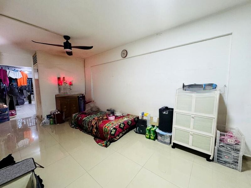 Step into this functional HDB flat and feel the practicality of its layout. The space is fully-furnished, featuring a large wooden wardrobe and multiple bunk beds, perfect for maximizing sleeping arrangements. Although natural light is limited, the ambiance remains cozy and inviting, ideal for those seeking a straightforward living environment.