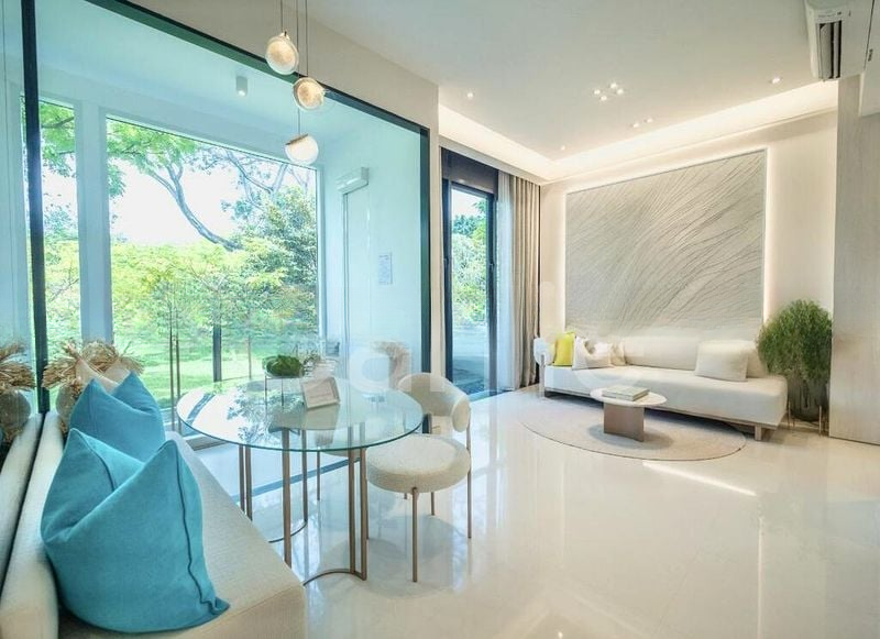 Step into a world of elegance and sophistication with this brand-new designer unit at ENCHANTÉ. Bathed in abundant natural light, the open concept living space features floor-to-ceiling windows that frame breathtaking city skyline and greenery views. The modern minimalist ambiance is accentuated by a marble-look feature wall, cove lighting, and bright white flooring, creating a serene and inviting atmosphere.