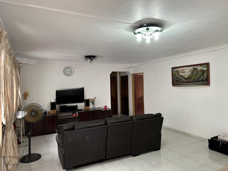 Step into this well-maintained 3-bedroom HDB flat and be greeted by a warm ambiance that feels both functional and inviting. The moderate natural light filters through the windows, highlighting the tiled flooring and the spacious living room, complete with a comfortable leather sofa and ceiling fan. Enjoy unblocked views of the surrounding greenery and the charming street below, creating a serene backdrop for your everyday life.