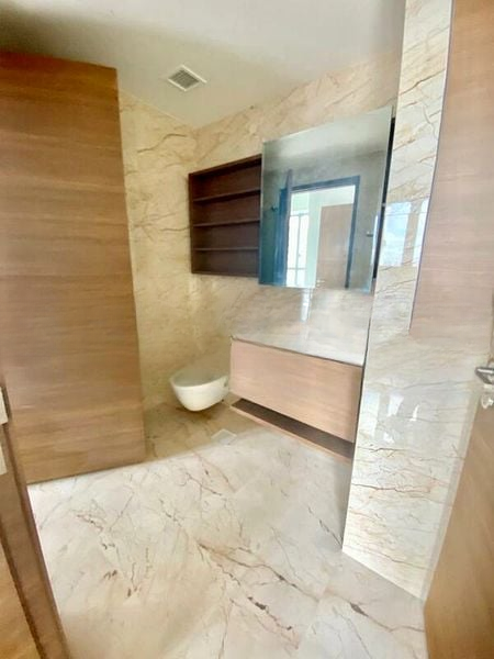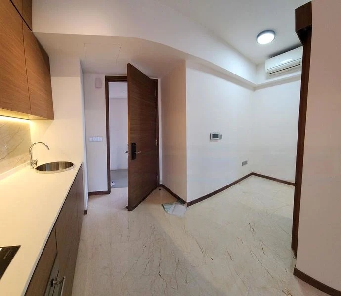 This exquisite 1-bedroom unit features a thoughtfully designed layout, complete with an integrated kitchen boasting full-height wood-grain cabinetry, an induction hob, and a built-in oven. The luxurious bathroom is a true retreat, featuring a rain shower and a floating wooden vanity, all adorned with elegant marble-look wall tiles. Step out onto the balcony to enjoy unblocked views of lush greenery and the city skyline, perfect for unwinding after a long day.
