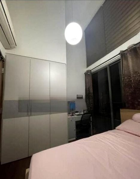 Step into a world of modern elegance as you enter this beautifully renovated unit at The Miltonia Residences. The high ceilings and floor-to-ceiling windows create an airy ambiance, allowing natural light to cascade through the living space. The geometric pendant lights add a touch of sophistication, while the urban views from the spacious balcony invite you to unwind in style.