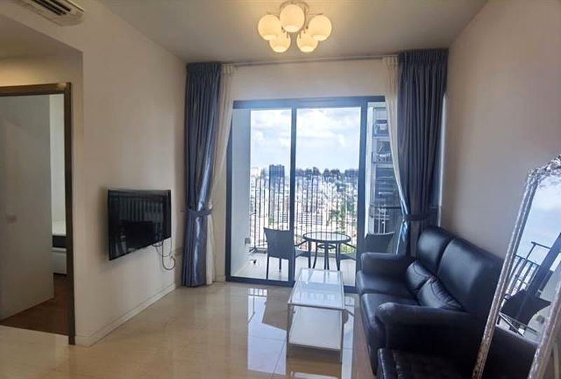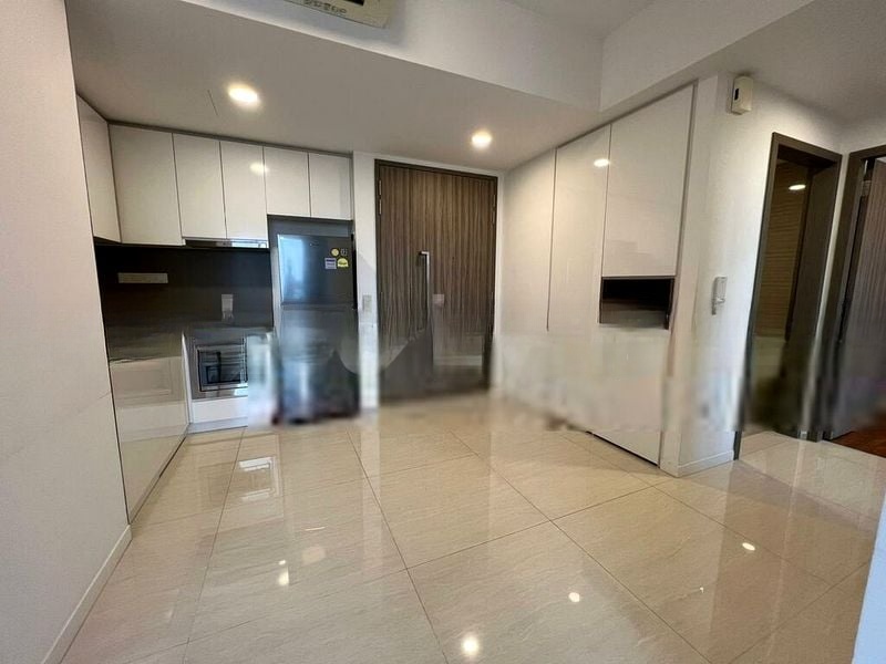 This efficient 797 sqft (74 sqm) layout features two well-appointed bedrooms, including a master suite with a dedicated walk-in closet and en-suite bathroom. The compact galley kitchen, adorned with white high-gloss cabinetry and countertops, boasts a large window for natural ventilation, making cooking a delightful experience. Enjoy seamless indoor-outdoor living with direct access to the balcony, perfect for soaking in the breathtaking views.