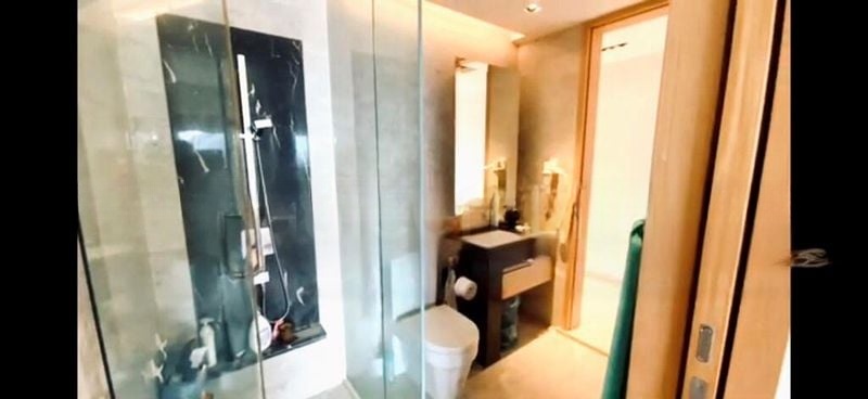 This well-maintained unit features a spacious layout with three bedrooms and three bathrooms, showcasing high-end finishes throughout. The modern kitchen boasts dark wood cabinetry paired with pristine white countertops, while the living room seamlessly connects to the balcony, perfect for entertaining. Luxurious marble finishes in the bathrooms and polished stone flooring in the high-ceiling lobby add to the overall allure of this exquisite home.