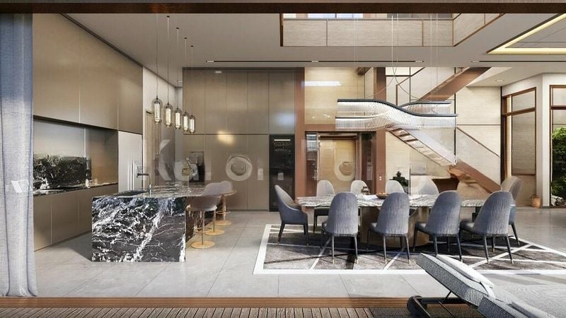 Step into a realm of modern luxury where abundant natural light dances through floor-to-ceiling windows, illuminating the exquisite finishes of this brand-new semi-detached home. The open-concept kitchen boasts a striking black marble island, complemented by designer pendant lighting that sets a sophisticated tone. As you move through the space, the double-volume ceiling in the dining area creates an airy ambiance, while the living room's wood-slatted feature wall adds warmth and character.