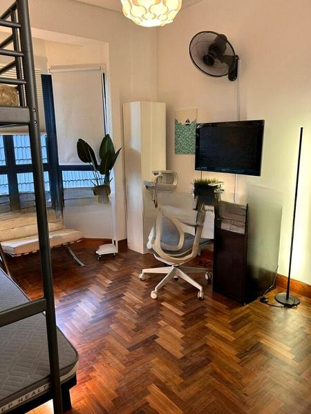 Step into this inviting 2-bedroom unit at Westcove Condominium, where natural light dances through large windows, illuminating the cozy living space adorned with an orange accent wall. The ambiance is warm and welcoming, complemented by views of lush greenery that create a serene retreat from the bustling city.