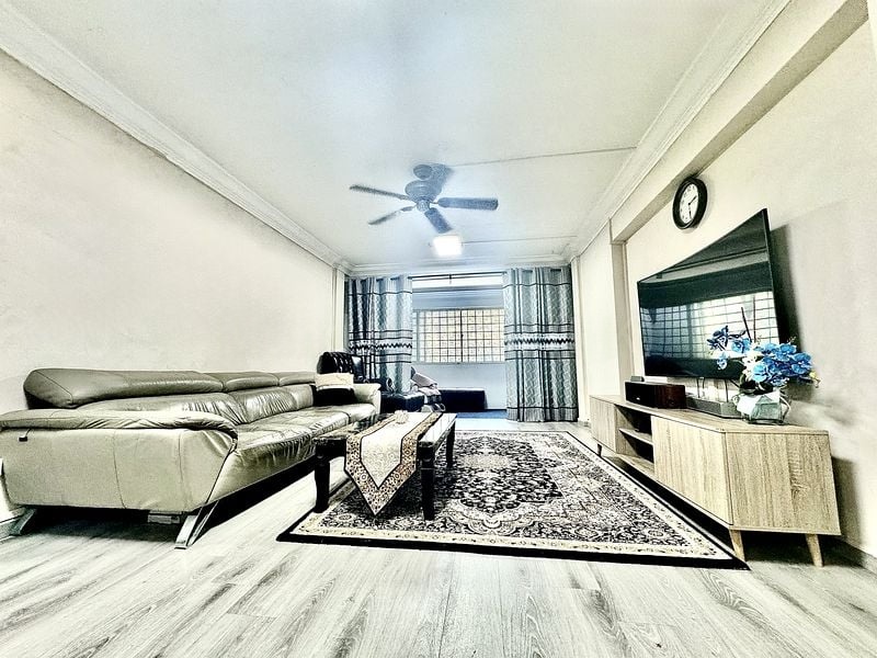 Step into a warm and inviting atmosphere as you enter this well-maintained HDB flat, where modern wood-look laminate flooring meets cozy lighting. The open-concept living area, enhanced by box lighting and a ceiling fan, creates a welcoming space perfect for relaxation. Enjoy the views of the peaceful residential neighborhood from the comfort of your home.