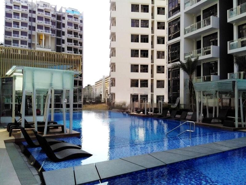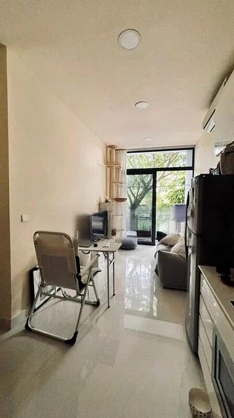 Step into a serene oasis where modern minimalism meets comfort. This well-maintained 2-bedroom unit at Urban Vista welcomes you with polished tile flooring and an abundance of natural light filtering through the large windows. The balcony offers a tranquil view of lush greenery, creating a peaceful ambiance that invites relaxation.