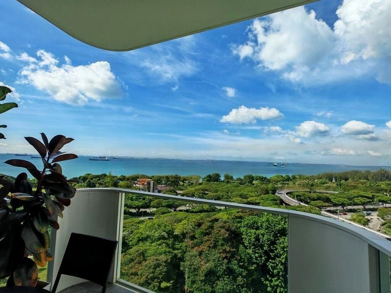 Step into a world of warmth and comfort as you enter this beautifully maintained unit at Coastline Residences. Bathed in natural light, the open-concept living and dining area features light-colored tiled flooring and floor-to-ceiling glass doors that seamlessly connect to a spacious balcony, offering unblocked views of the city skyline and lush greenery.