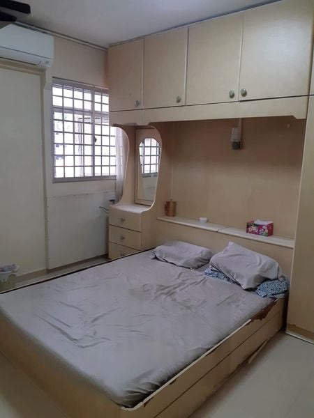Step into a warm and inviting atmosphere where cozy living meets practical design. This 2-bedroom HDB unit features moderate natural light that enhances the tiled flooring and highlights the built-in storage and vanity in the main bedroom. Enjoy the neighborhood views from your living room, creating a serene backdrop for your daily life.