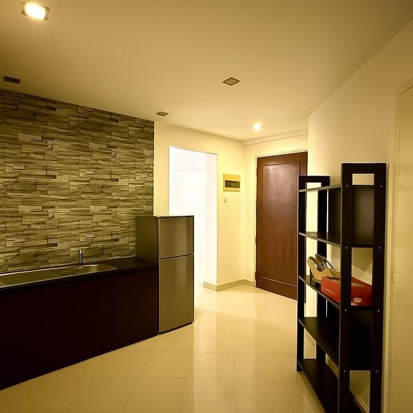This well-maintained 3-bedroom unit features a modern kitchen with dark stone countertops and wooden cabinetry, perfect for culinary enthusiasts. The living room boasts large format floor tiles and a ceiling fan, while the bedrooms offer wood-look flooring and ample storage with built-in wooden wardrobes. The open concept layout seamlessly connects the dining area to the kitchen, making it ideal for entertaining.