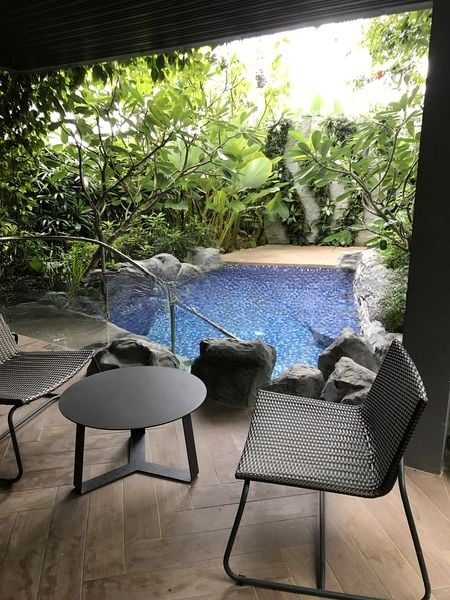 Step into a sanctuary of modern elegance at Mon Jervois, where abundant natural light floods the spacious living areas, highlighting the sleek finishes and minimalist design. The floor-to-ceiling balcony doors frame stunning views of the lap pool and lush greenery, creating a serene ambiance that invites relaxation.