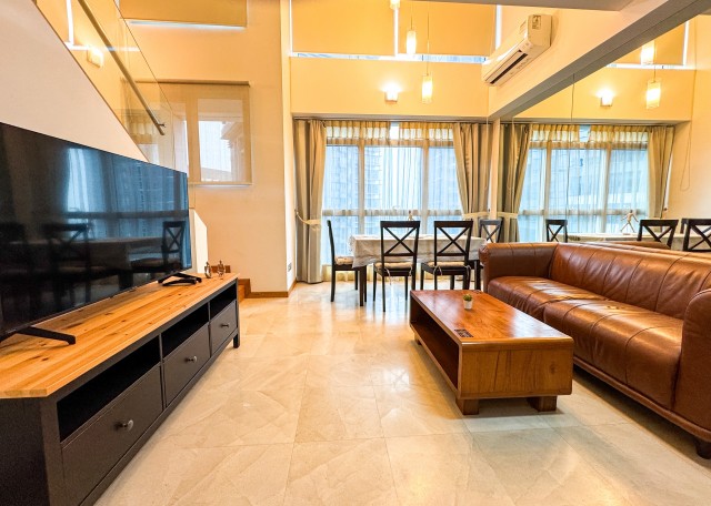 Step into a world of elegance and sophistication as you enter this beautifully designed loft-style unit at ICON. The abundant natural light floods the space through floor-to-ceiling windows, illuminating the polished dark tiles and highlighting the stunning wooden feature wall. The double-volume ceiling creates an airy ambiance, while the city skyline and urban greenery views provide a breathtaking backdrop.