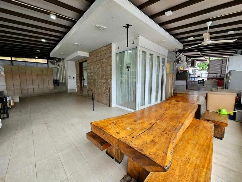 Step into a world of elegance as you enter this well-maintained landed home, where abundant natural light floods the space, accentuating the high sloped ceilings and the lush greenery visible from every window. The bright and airy ambiance invites you to unwind, while the stunning crystal chandeliers and solid wood slab dining table create a warm, inviting atmosphere.