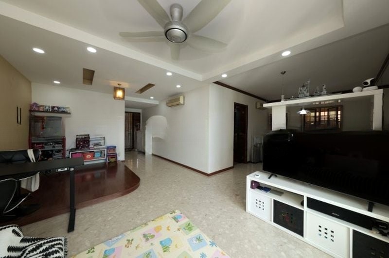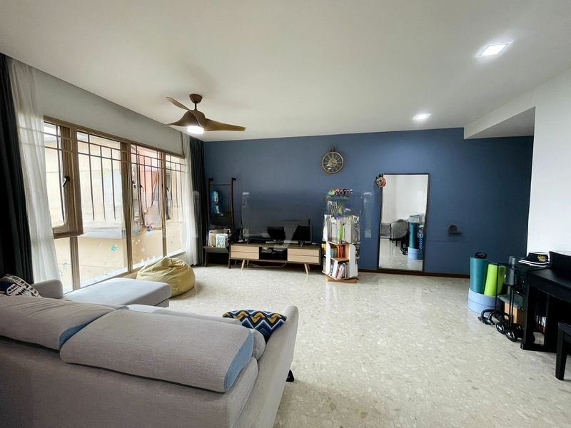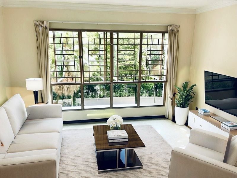 Step into a world of modern elegance as you enter this beautifully renovated 3-bedroom unit at The Rivervale. The open-concept living room greets you with a striking blue feature wall, complemented by large windows that flood the space with natural light. The marble-look floor tiles enhance the contemporary ambiance, creating a warm and inviting atmosphere perfect for relaxation or entertaining.