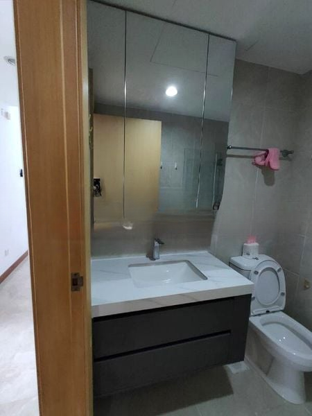 Step into this beautifully renovated unit at Lakeholmz, where abundant natural light floods the space, enhancing the modern minimalist ambiance. The sliding glass doors in the living room open to a balcony, offering an urban view of neighboring high-rise buildings, creating a serene yet vibrant atmosphere.