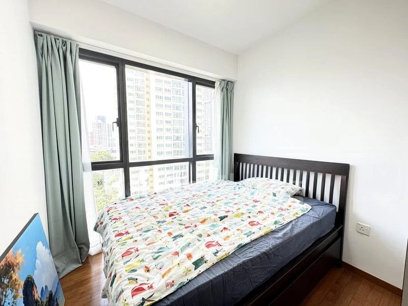 Step into a sanctuary of modern minimalism at Stirling Residences, where abundant natural light floods the open-plan living and dining area through floor-to-ceiling windows. The airy ambiance is complemented by polished wood flooring in the bedrooms and sleek grey tiles in the living space, creating a harmonious blend of comfort and style. Enjoy urban views from your private balcony, perfect for unwinding after a long day.