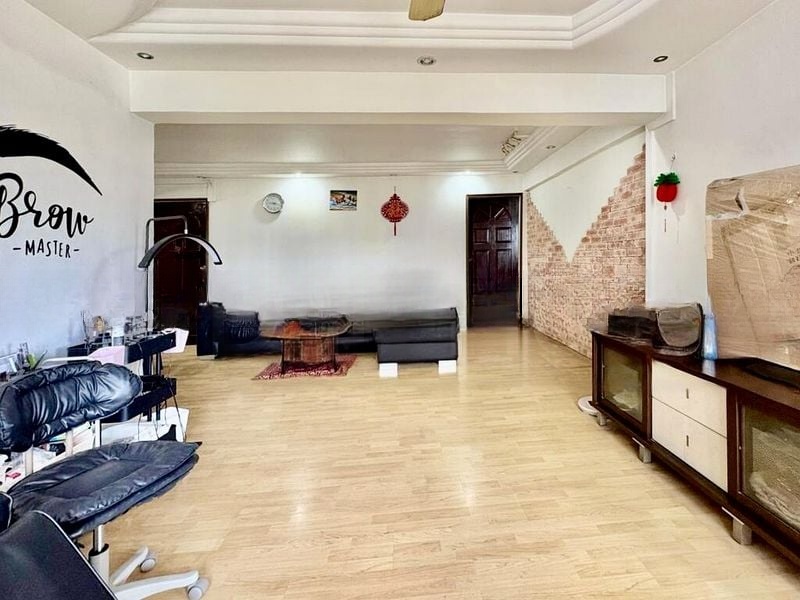 This efficient 4-room layout boasts three spacious bedrooms, a dedicated store room, and a separate kitchen and bath/WC area, catering to all your needs. The home business area is a standout feature, equipped with a professional salon chair and specialized lighting, making it ideal for entrepreneurs seeking a seamless work-life balance. Enjoy the privacy of a corridor end unit, providing an extra layer of tranquility in your daily life.