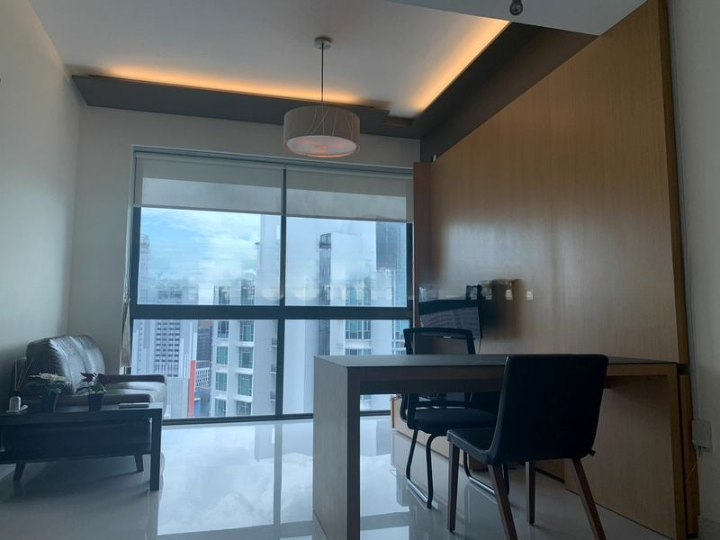 Step into a sanctuary of light and space, where abundant natural light floods through floor-to-ceiling windows, offering breathtaking views of the city skyline, Marina Bay Sands, and the Singapore Flyer. The bright and airy ambiance invites you to relax and unwind, while the polished tile flooring and elegant pendant lighting enhance the sophisticated feel of this well-maintained unit.