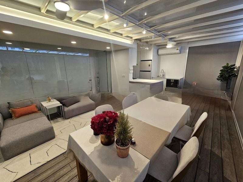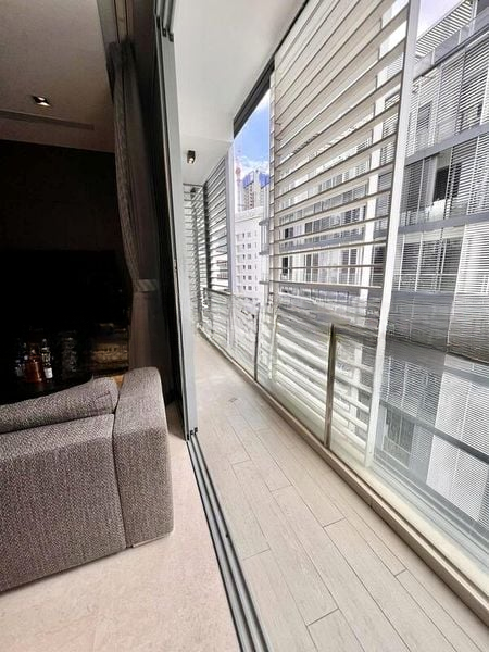 Step into a world of modern elegance as you enter this beautifully designed 1-bedroom unit at The Boutiq. The abundant natural light floods the space, highlighting the exquisite marble flooring and the sleek, minimalist finishes. The entrance hallway welcomes you with mirrored cabinetry and built-in bench seating, creating an inviting ambiance that flows seamlessly into the living area, where floor-to-ceiling sliding glass doors frame urban views.
