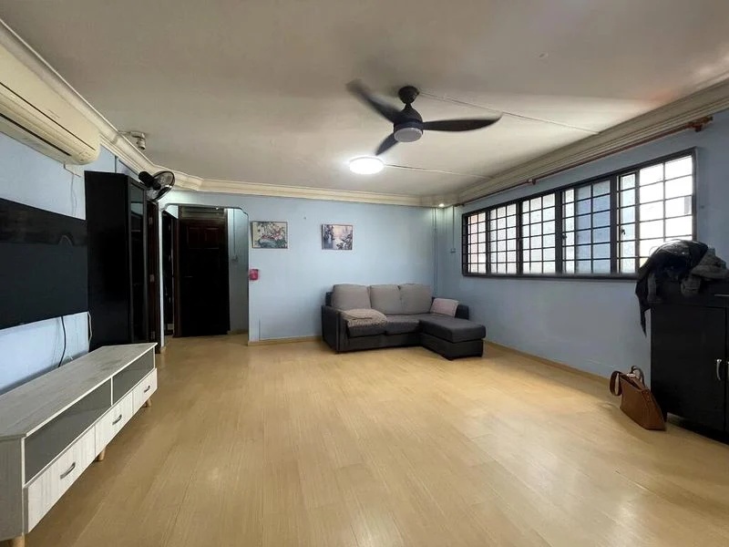 Step into this inviting 3-bedroom flat where cozy ambiance meets functional living. The spacious living room, adorned with laminate flooring and a large window, bathes the space in natural light while offering an urban view that enhances your daily living experience.