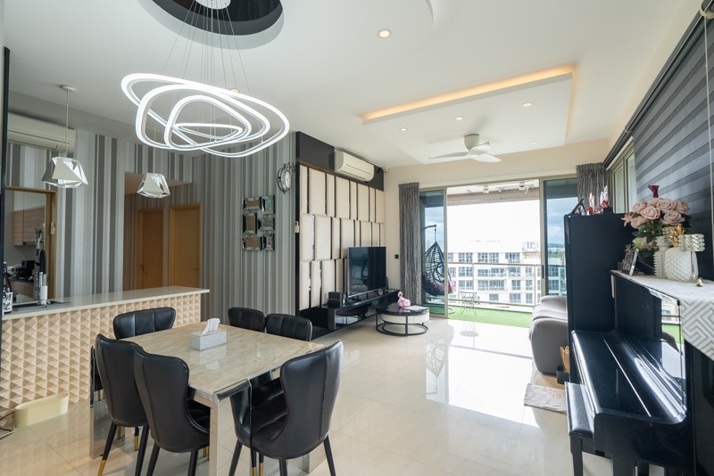 Step into a sanctuary of modern elegance at Sea Horizon, where abundant natural light floods the spacious living area, accentuating the stunning white brick feature wall and cove lighting. The cozy ambiance invites you to relax on the leather sofas or step out onto the balcony to soak in the unblocked greenery views that surround your new home.