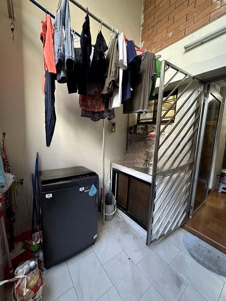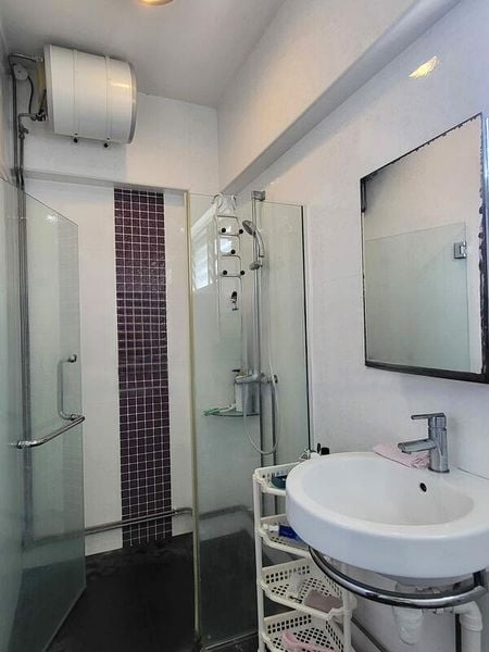 Step into a bright and airy sanctuary where modern elegance meets comfort. The open-plan living and dining area, adorned with light wood-look flooring and track lighting, invites you to unwind. Enjoy the serene views of the lush HDB courtyard through zebra blinds, creating a peaceful ambiance throughout the unit.