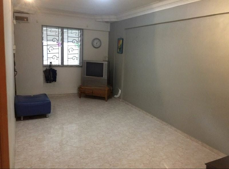 Step into this inviting 2-bedroom flat where simplicity meets functionality. The moderate natural light filters through windows adorned with metal grilles, casting a warm glow on the tiled flooring and grey walls of the living room. The cozy ambiance is complemented by views of surrounding greenery and HDB blocks, creating a serene living environment.