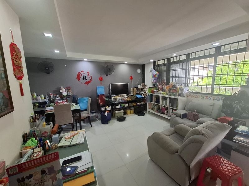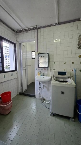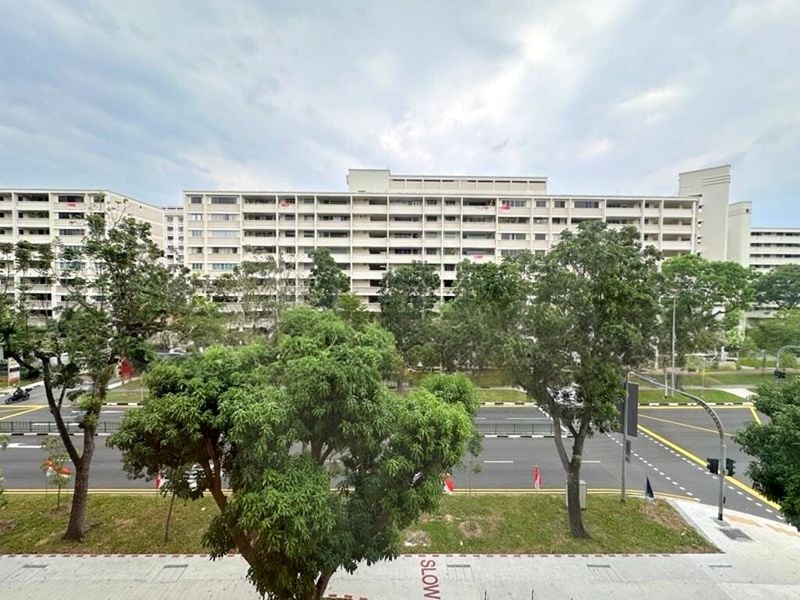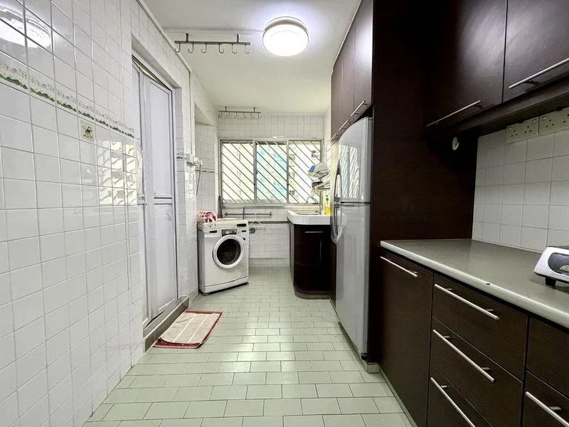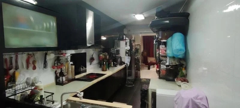 Step into this functional HDB flat and be greeted by a spacious galley kitchen, featuring original green cabinetry that adds a unique charm. The moderate natural light filters through, creating a warm ambiance as you take in the unblocked greenery views from the living area, complemented by a street view of the surrounding neighborhood.