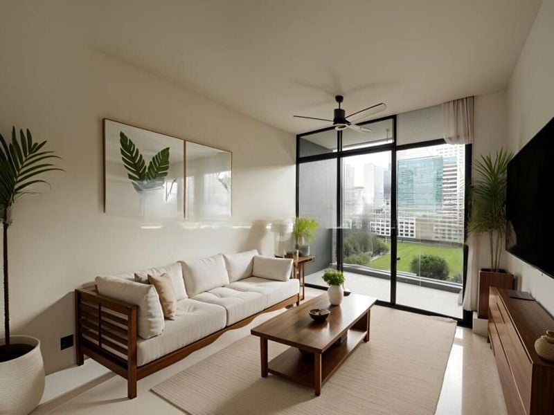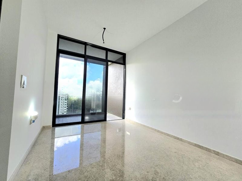 Step into a world of modern elegance as you enter this brand-new 2-bedroom unit at Pullman Residences Newton. Bathed in abundant natural light, the open-concept living room features polished stone flooring and floor-to-ceiling windows that frame breathtaking views of the city skyline and lush greenery, creating an inviting ambiance that feels both spacious and serene.
