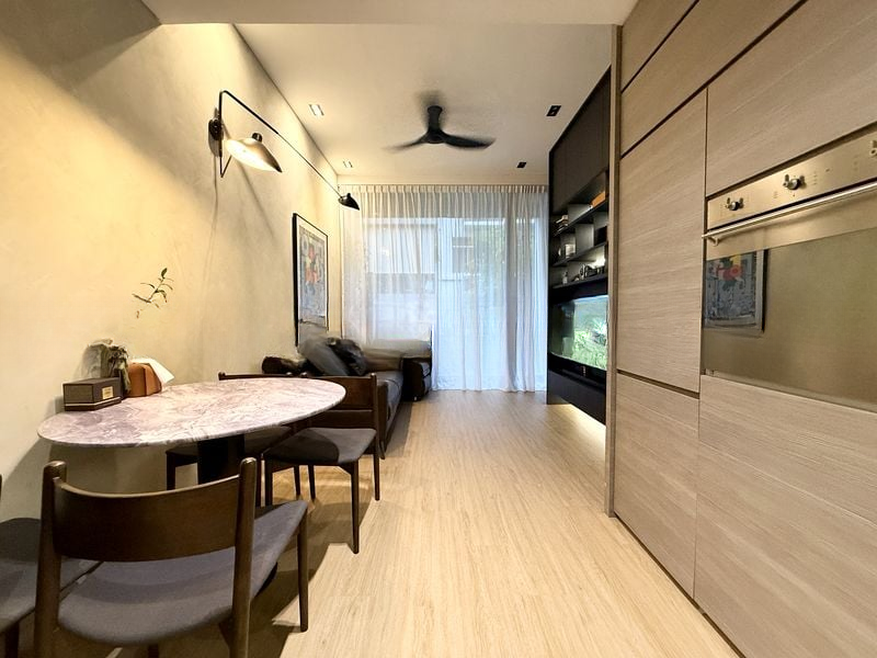 Step into a world of modern luxury as you enter this exquisite home at Seletar Park. The open-concept living area greets you with stunning marble-look tile flooring, complemented by cove lighting that creates an inviting ambiance. A vertical green wall and a skylight infuse the space with natural beauty and light, while designer chandeliers add a touch of elegance.