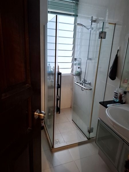 This well-appointed 3-bedroom, 3-bathroom unit features standout elements such as a stylish glass shower enclosure in the bathrooms and a functional L-shaped kitchen equipped with a gas stovetop and ample cabinetry. The thoughtful layout ensures comfort and convenience, with a dedicated utility area that includes a front-load washing machine and drying rack, making daily chores a breeze.