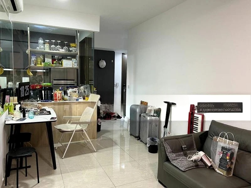 Step into a world of modern elegance as you enter this beautifully renovated unit at Grandeur Park Residences. Bathed in abundant natural light, the open layout living room seamlessly connects to a spacious balcony, offering unblocked views of the city skyline and lush greenery. The minimalist design, complemented by grey blackout curtains and white walls, creates a serene ambiance perfect for relaxation.