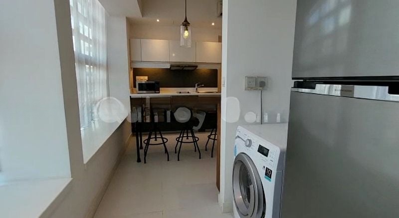 Step into a world of light and tranquility as you enter this beautifully renovated 1-bedroom unit at Lotus at Paya Lebar. The abundant natural light floods through the floor-to-ceiling windows, creating a bright and airy ambiance that instantly uplifts your spirits. Enjoy serene views of greenery and the city skyline from the comfort of your living space, enhanced by elegant track lighting and chic monochrome decor.
