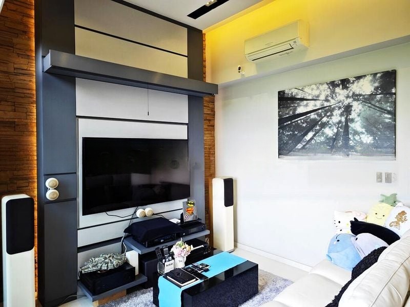 Step into a world of modern elegance as you enter this beautifully renovated unit at The Skywoods. Bathed in abundant natural light, the cozy ambiance is enhanced by designer finishes, including a wood-textured feature wall and a custom TV console that invites relaxation. The expansive floor-to-ceiling windows frame breathtaking views of lush greenery and hills, creating a serene backdrop for everyday living.