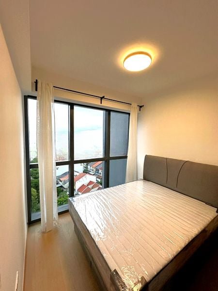 Step into this brand-new condominium unit at The Florence Residences and be greeted by an abundance of natural light that floods the open-concept living space. The polished tile flooring reflects the modern minimalist design, creating a serene ambiance that invites relaxation. Enjoy stunning views of the pool from your balcony, where the glass railing enhances the sense of openness and connection to the outdoors.