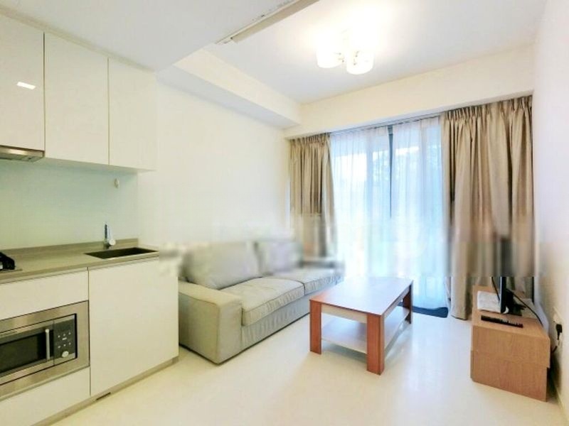 Step into this beautifully maintained 1-bedroom unit at The Scala, where abundant natural light floods the open-plan living space, highlighting the modern minimalist finishes. The large floor-to-ceiling windows offer serene views of lush greenery, creating a tranquil ambiance that invites relaxation.