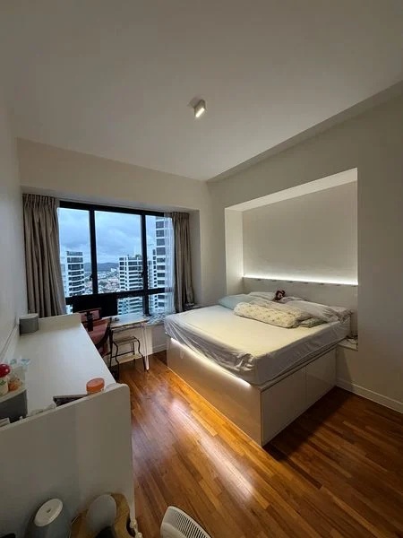 Step into this beautifully renovated 2-bedroom unit at D'LEEDON and be greeted by an abundance of natural light that fills the space, highlighting the exquisite marble-look feature wall and mirrored accents that create a cozy and warm ambiance. The panoramic views of the city skyline and lush greenery from the large balcony with timber decking invite you to unwind in style, making every moment spent here a delight.