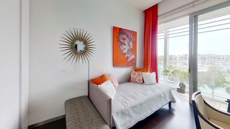 Step into a world of elegance as you enter this magnificent unit at The Oceanfront @ Sentosa Cove. The bright and airy ambiance is accentuated by abundant natural light pouring through the floor-to-ceiling windows, illuminating the exquisite white marble flooring and the grandeur of the double-height ceiling adorned with crystal chandeliers. The urban and waterfront views create a captivating backdrop, making every moment spent here a visual delight.