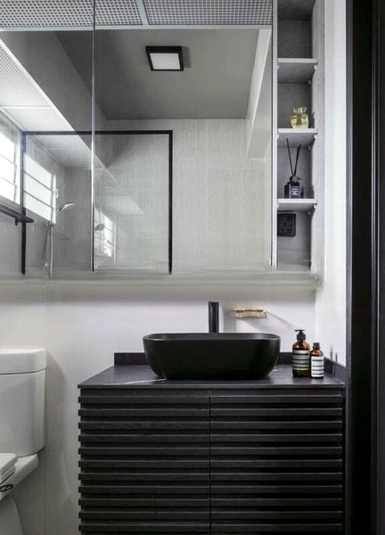 Step into this stunning 3-bedroom HDB flat and be captivated by the modern minimalist ambiance, accentuated by designer finishes and an abundance of natural light. The urban views from the living room create a vibrant backdrop, while the copper geometric pendant lights and blue herringbone backsplash add a touch of elegance and sophistication.