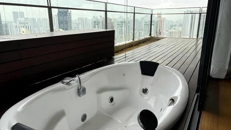 Step into this stunning 4-bedroom unit at SKYPARK and be greeted by an abundance of natural light pouring through the floor-to-ceiling windows, illuminating the polished marble flooring and enhancing the bright, airy ambiance. The double-volume high ceiling creates an impressive sense of space, while the large balcony with wood decking invites you to unwind with unobstructed views of the city skyline.