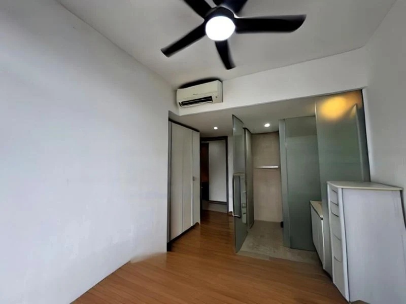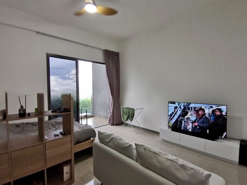 Step into this beautifully renovated studio at Stratum and be greeted by a modern minimalist ambiance, accentuated by a stunning checkered stone water feature at the entrance. The natural light flows through the space, highlighting the sleek finishes and creating a warm, inviting atmosphere.
