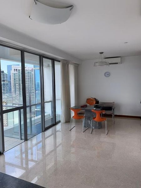 Step into a bright and airy sanctuary at Residences @ Evelyn, where abundant natural light floods the spacious living and dining area through floor-to-ceiling windows. The polished tile flooring enhances the modern ambiance, while the balcony offers panoramic views of the city skyline and lush greenery, creating a perfect backdrop for relaxation.