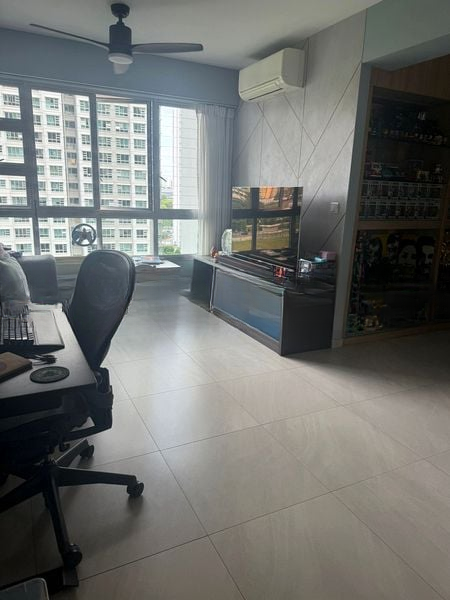 Step into a world of tranquility as you enter this high-floor HDB flat, where the lush greenery and unblocked park views greet you through expansive windows. The living room, adorned with classic terrazzo flooring, exudes a functional charm, complemented by moderate natural light that creates a warm and inviting ambiance.