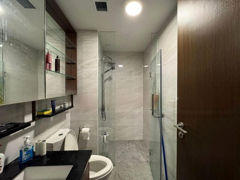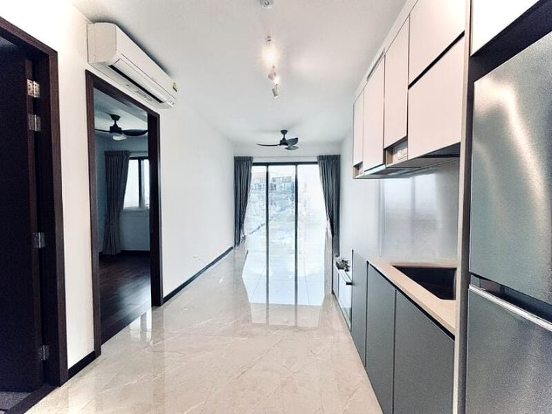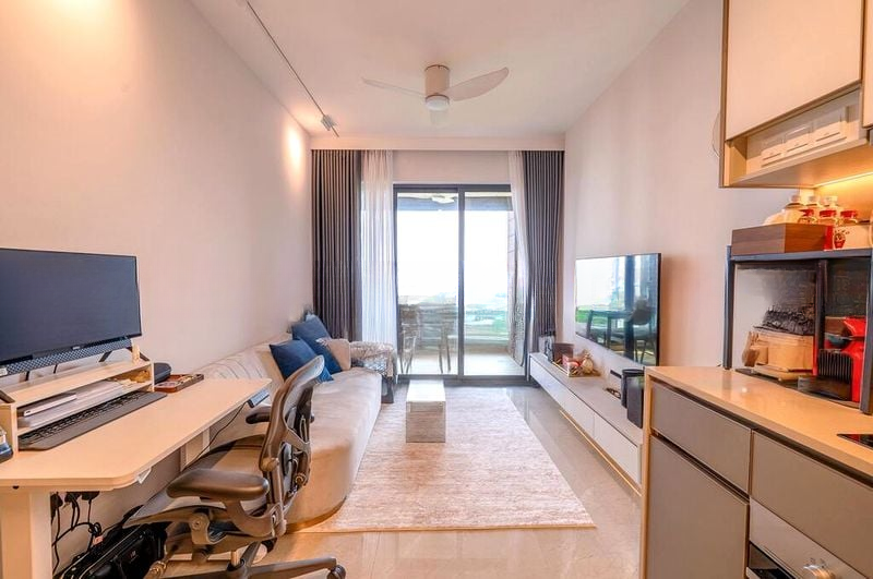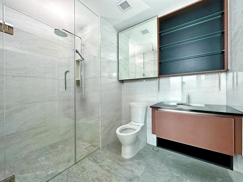 Step into this brand-new unit at Normanton Park and be greeted by an abundance of natural light that floods the open-plan living area, accentuating the sleek marble-look porcelain tiles underfoot. The full-height sliding glass doors lead you to a private balcony, where you can enjoy breathtaking views of the city skyline and lush greenery, creating a serene urban retreat.