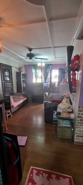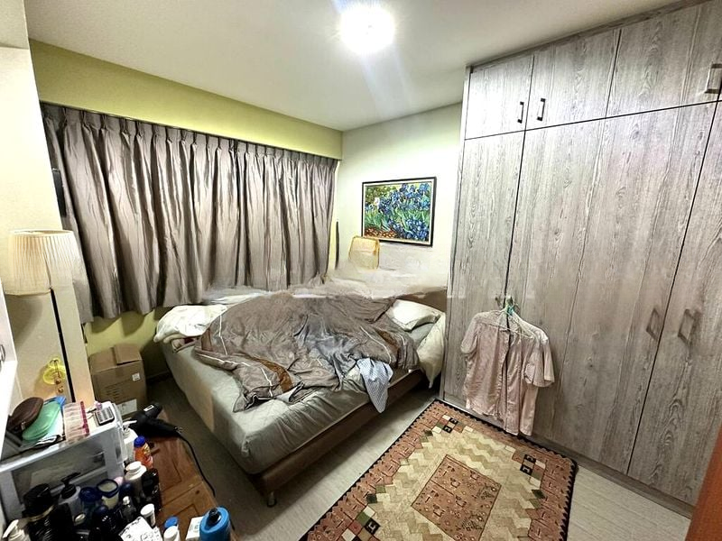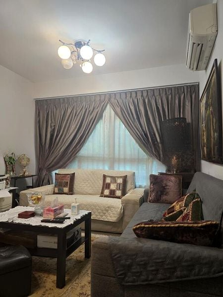 Step into this functional 2-bedroom flat and feel the simplicity of its original charm. Natural light filters through the windows, illuminating the open living and dining area, where large format floor tiles create a spacious ambiance. The views of neighboring buildings provide a sense of community while the ceiling fans and air conditioning ensure comfort throughout the day.