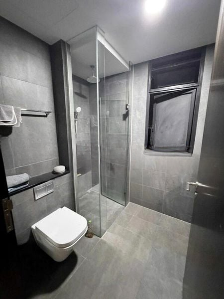Step into this brand-new 2-bedroom unit at Park Colonial, where abundant natural light floods through floor-to-ceiling windows, illuminating the sleek modern minimalist design. The airy living room, adorned with grey tiled flooring and white walls, seamlessly connects to a private balcony that offers serene views of the pool and lush greenery, creating a tranquil retreat in the heart of the city.