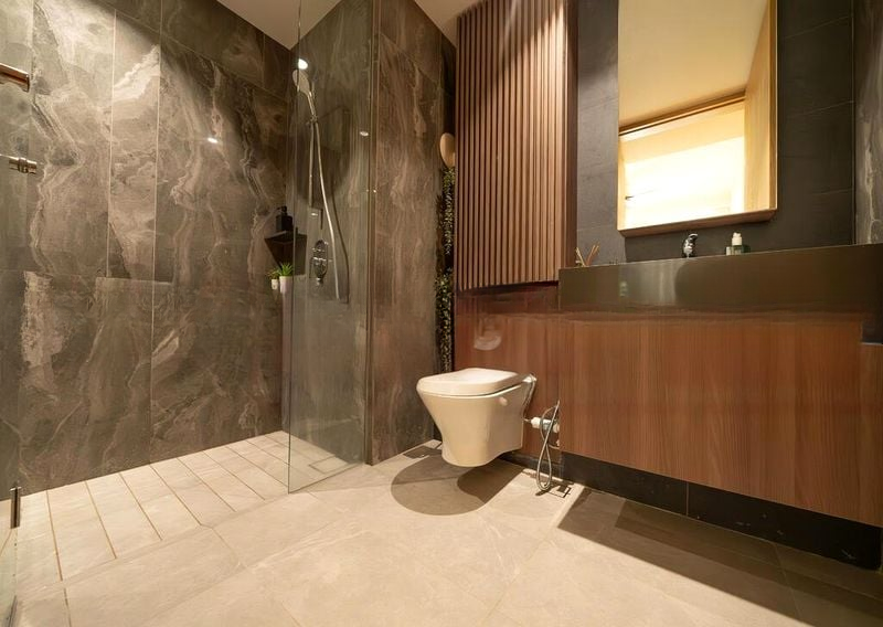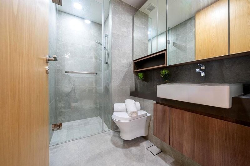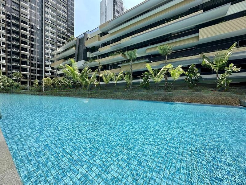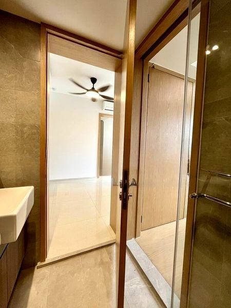 Step into a world of modern elegance as you enter this brand-new unit at MIDWOOD. The abundant natural light floods through the floor-to-ceiling windows, offering breathtaking views of lush greenery and the city skyline. The polished floor tiles and minimalist design create an airy ambiance, making you feel instantly at home.