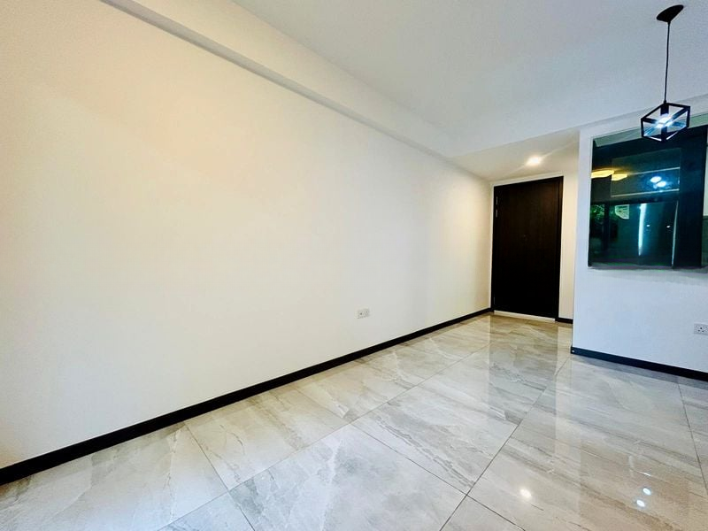 Step into a world of modern elegance as you enter this beautifully renovated 2-bedroom unit at Lake Grande. The open-plan living and dining area, adorned with large format marble-look tiles, invites abundant natural light, creating a warm and inviting ambiance. Enjoy serene views of lush greenery from your balcony, enhancing the tranquil atmosphere of your home.