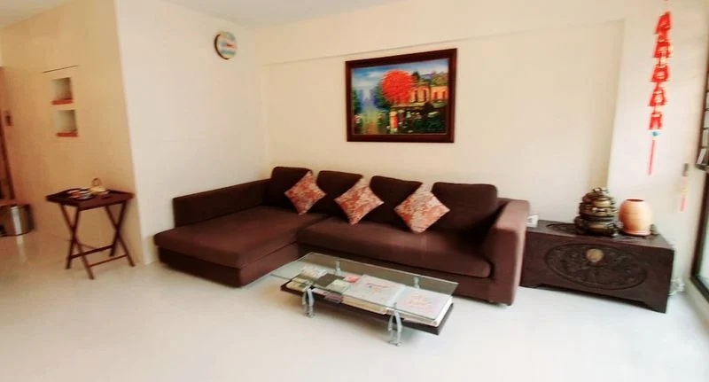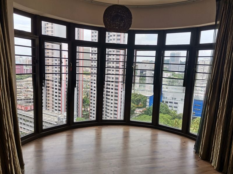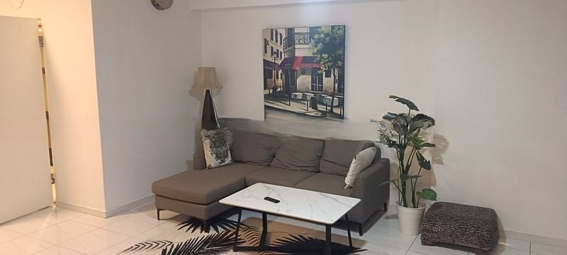 Step into a world of industrial chic where modern design meets comfort. As you enter this well-maintained HDB unit at 75B Redhill Rd, you are greeted by a striking white brick feature wall and exposed black conduits that create a unique ambiance. The natural light filters through, illuminating the stylish wood-look flooring and enhancing the inviting atmosphere of the living room, while views of greenery and neighboring buildings provide a refreshing backdrop.